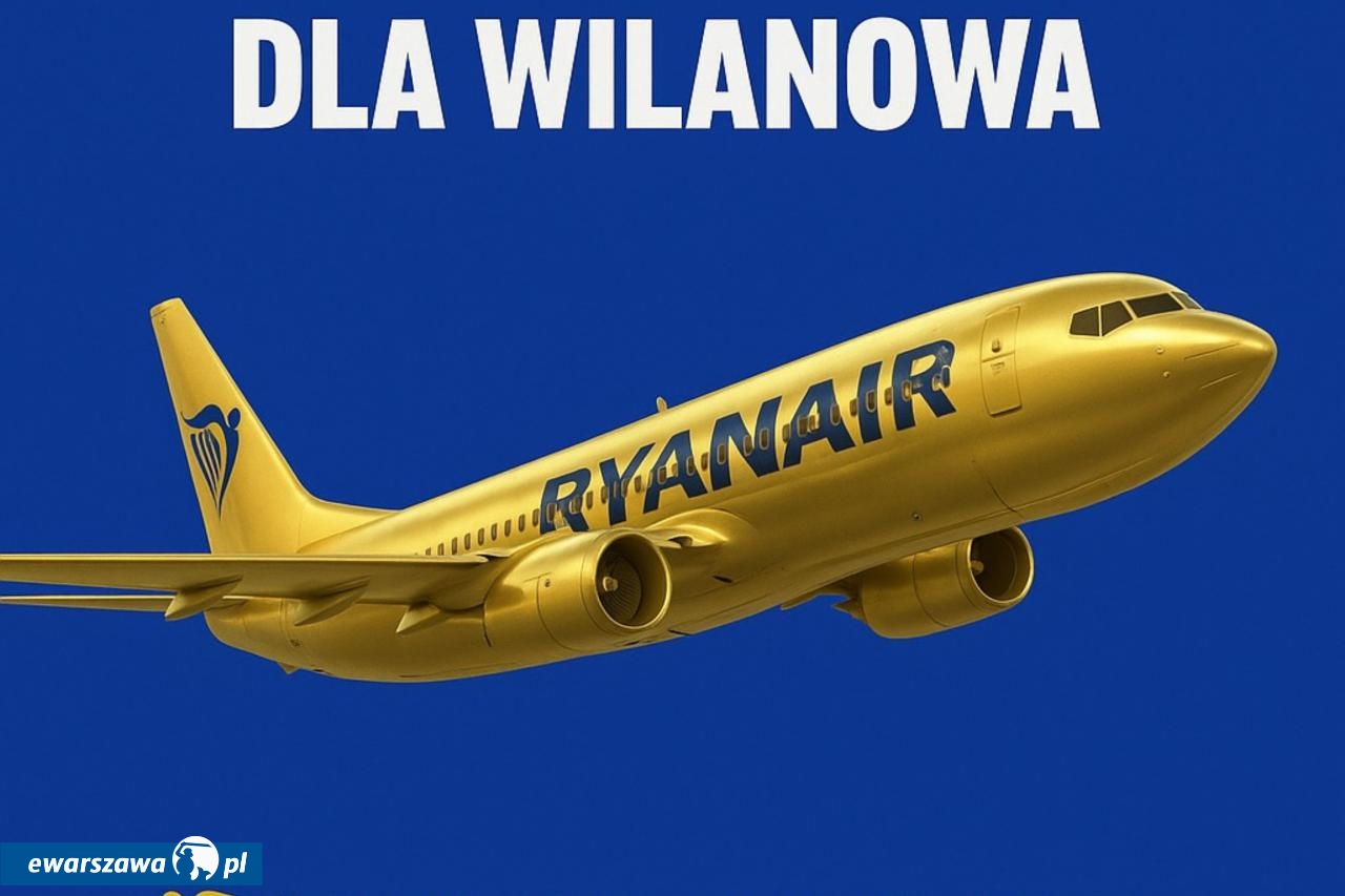 Mieszkańcy Wilanowa sprzeciwiają się od jakiegoś czasu budowie Dino, uważając, że zakłóci spokój i estetykę luksusowej okolicy. Pisaliśmy o tym TU. Ten spór eskaluje, a w internecie przynosi lawinę komentarzy. Mając to na uwadze do fali żartów dołączył właśnie Ryanair. Przewoźnik chcąc wzbudzić zainteresowanie, do linku z ofertą promocyjnych lotów, dołączył wymowną grafikę ze złotym samolotem. "Oferta specjalna dla Wilanowa". Później dodał jeszcze komentarz: "Tylko dla Wilanowa. Czerwony Dywan w cenie".