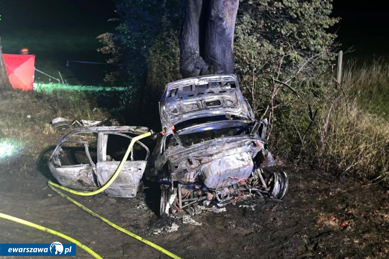 Jak informują służby, samochód uderzył w drzewo przy drodze wojewódzkiej nr 696. A że siła była ogromna, pojazd rozpadł się na pół i stanął w płomieniach. Wiadomo, ze kierowca płci męskiej zginął na miejscu. Jego ciało ratownicy znaleźli kilkanaście metrów od samochodu. Policja ustala teraz jego tożsamość. Trwa też śledztwo które ma odpowiedzieć na pytanie, dlaczego prowadzący BMW stracił panowanie nad autem i zjechał z jezdni.