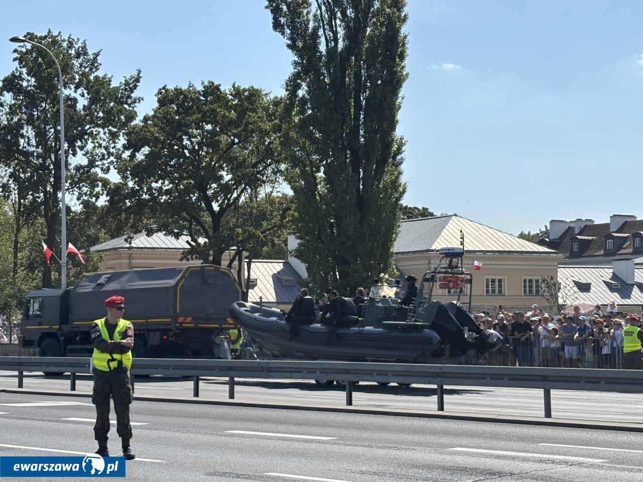 Po wystąpieniach wicepremiera, ministra obrony narodowej Władysława Kosiniaka-Kamysza oraz prezydenta Karola Nawrockiego, 15 sierpnia warszawską Wisłostradą ruszyła wojskowa defilada, Cztery tysiące żołnierzy zaprezentowało najnowocześniejszy sprzęt, w tym czołgi K2 i Abrams, bojowe wozy piechoty Borsuk czy pojazdy Baobab-K. Nad stolicą przeleciało ponadto 50 śmigłowców i samolotów, w tym wielozadaniowe myśliwce F-16. Na czele defilady przemaszerowała kompania reprezentacyjna Wojska Polskiego w mundurach Wojsk Lądowych, Sił Powietrznych i Marynarki Wojennej, a za nimi Wojska Specjalne, Wojska Obrony Terytorialnej, żołnierze Wojsk Obrony Cyberprzestrzeni oraz Żandarmerii Wojskowej. Następnie przed zgromadzonymi przedefilowały reprezentacje wszystkich dywizji i innych jednostek Sił Zbrojnych RP.