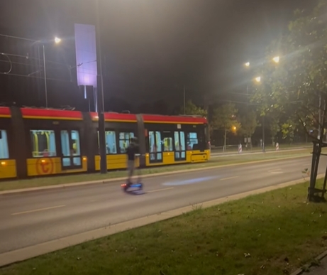 W Internecie pojawiło się nagranie, na którym widać, jak młodzi ludzie pędzą hulajnogami.
