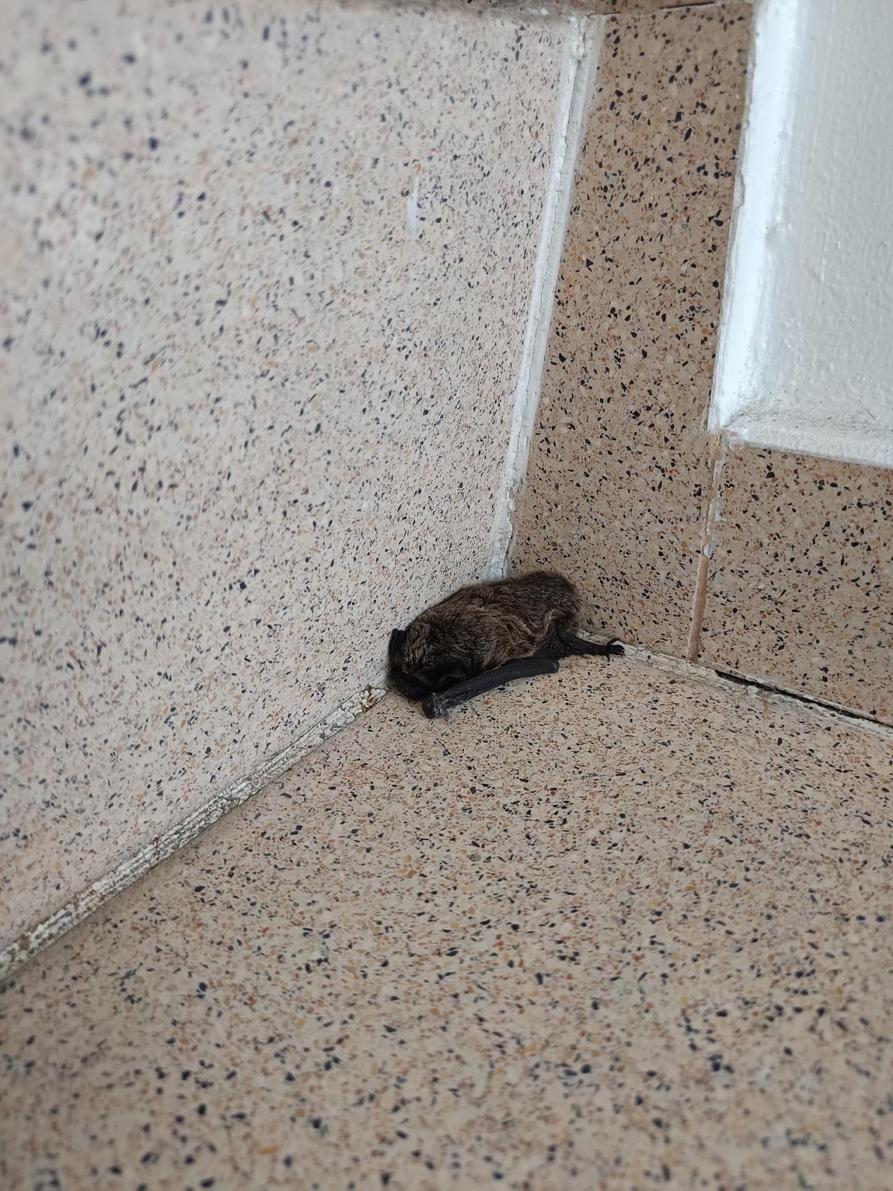 - Mały nietoperz, żywy, tak leży na klatce. Gdzie dzwonić? - zapytała mieszkanka Warszawy i opublikowała zdjęcie nietoperza, który leżał w rogu na klatce schodowej.