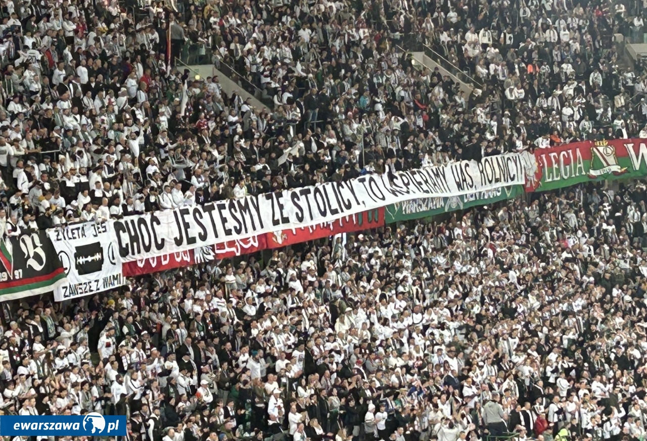 Podczas sobotniego meczu Legii z Pogonią, na żylecie pojawił się transparent "Choć jesteśmy ze stolicy, to wspieramy was rolnicy".