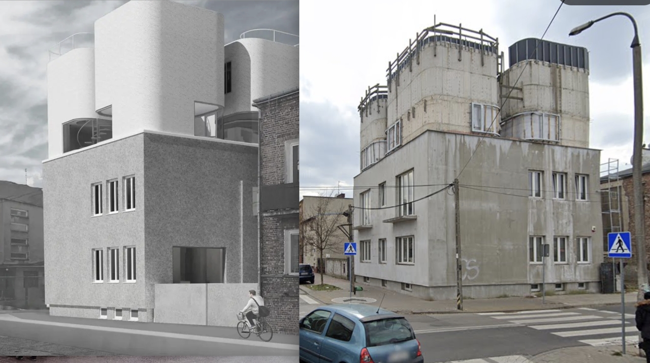 Ten budynek miał być gotowy w 2018 roku. Pomysł był prosty - powiększyć dom nie przez powiększenie powierzchni jego zabudowy, a poprzez dobudowanie części nad. Zaangażowano uznanego architekta, Jacka Krycha z pracowni JRK72. Zaproponował on dobudowanie bardzo nowoczesnej części betonowej na przedwojennej willi. Całość miała zamieszkiwać jedna rodzina - to nie był pomysł na mikrokawalerki ani nic podobnego. Prace zaczęły się w 2014 roku, od początku szły powoli, ale uzasadniano to potrzebą wzmacniania fundamentów. Aż w 2017 roku stanęły całkowicie. Przez ostatnie lata nie działo się na tej budowie już zupełnie nic. Nie najlepiej zabezpieczona budowa zaczyna straszyć. Próbowaliśmy nawiązać kontakt z architektem - niestety próba rozmowy jak i wiadomość e-mail pozostały bez odpowiedzi.