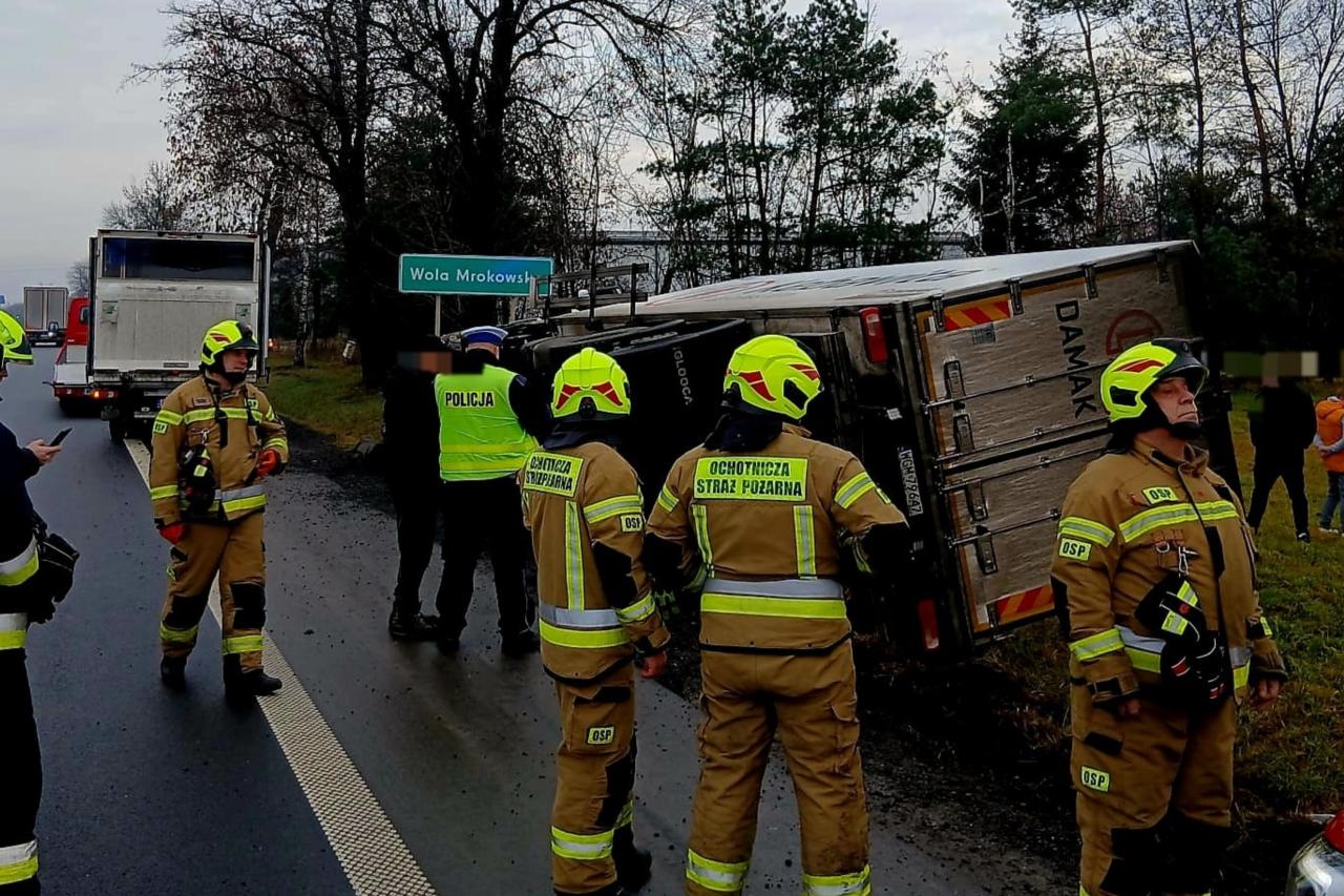 Ciężarówka wpadła do rowu. Kilkugodzinne utrudnienia w jeździe w kierunku Warszawy