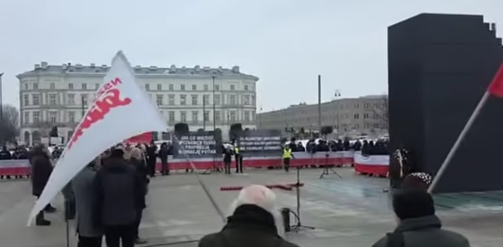 Gorąco na kolejnej miesięcznicy smoleńskiej w Warszawie. "Fakt" donosi, że gdy politycy PiS wychodzili z kościoła i kierowała się w stronę pomnika na placu Piłsudskiego, na ich drodze pojawił się jeden z przeciwników obchodów z transparentem: "Najwięksi kłamcy, złodzieje, zbrodniarze, degeneraci nie siedzą w więzieniach, ale na salach parlamentów".
