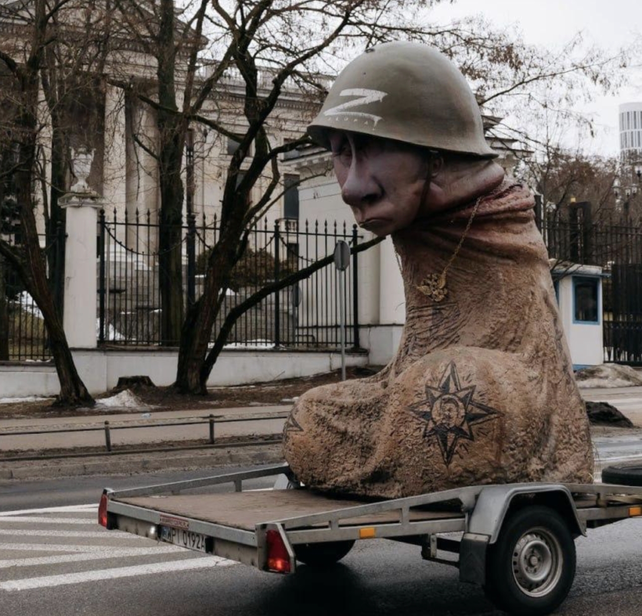 Rzeźba Putina stanęła przed ambasadą Rosji, po czym ruszyła na Warszawę