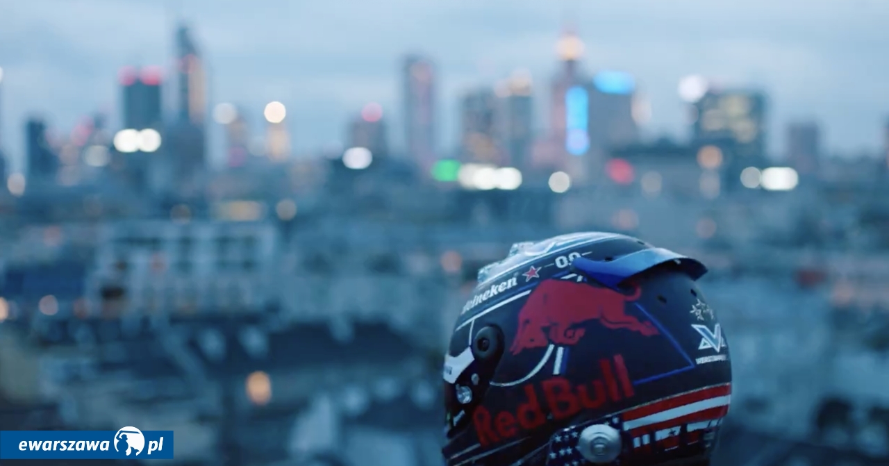 Mistrz świata Formuły 1 reklamuje swój kask... na tle Warszawy
