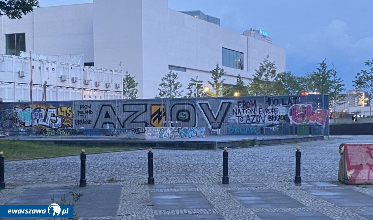 Hasło "Azow" wraz z charakterystycznym emblematem tego pułku zostały wymalowane na płocie terenu budowy przy Muzeum Historii Polski przy Pałacu Kultury. Malunek budzi kontrowersje, nie tylko ze względu na zniszczenie mienia (każe graffiti powstałe bez zgody właściciela terenu jest wykroczeniem lub przestępstwem), ale także przez kontrowersje jakie budzi pułku Azow. Trzeba także przyznać, że w walce z Rosją, ukraińscy żołnierze potrzebują przede wszystkim posiłków, a nie malunków na płotach kilkaset kilometrów od frontu.