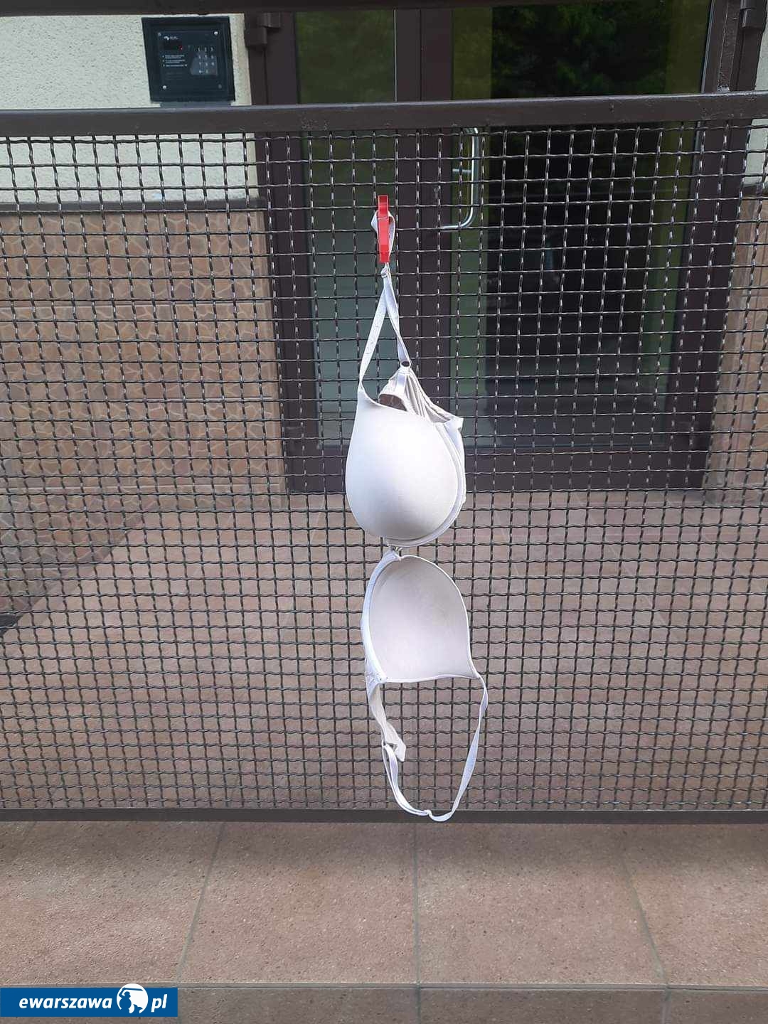 Mieszkaniec Targówka zauważył wiszący na siatce bramy stanik.