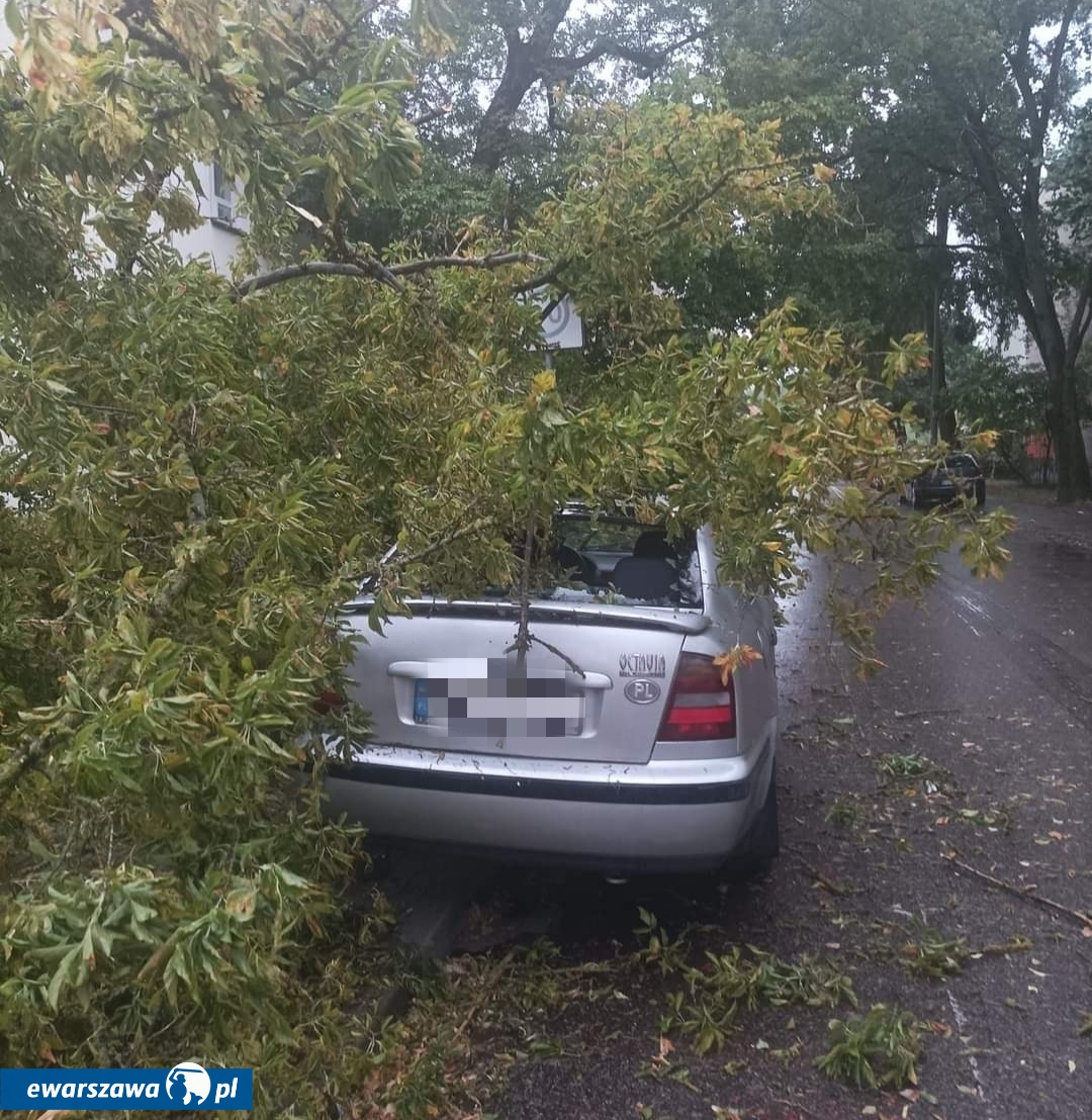 Zaraz po tym strażacy mieli pełne ręce roboty. Na Bielanach po wichurze jeden z mieszkańców znalazł samochód, na który spadło drzewo. Zaapelował w mediach społecznościowych do właściciela pojazdu.