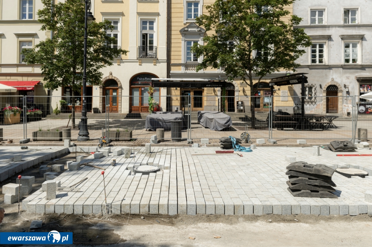 Prace remontowe na jezdni Krakowskiego Przedmieścia, rozpoczęte pod koniec roku szkolnego, idą zgodnie z planem. Wykonawca zerwał już część starej nawierzchni, zastępując ją nową kostką. Równocześnie sprawdza system odwodnienia znajdujący się pod kostką.