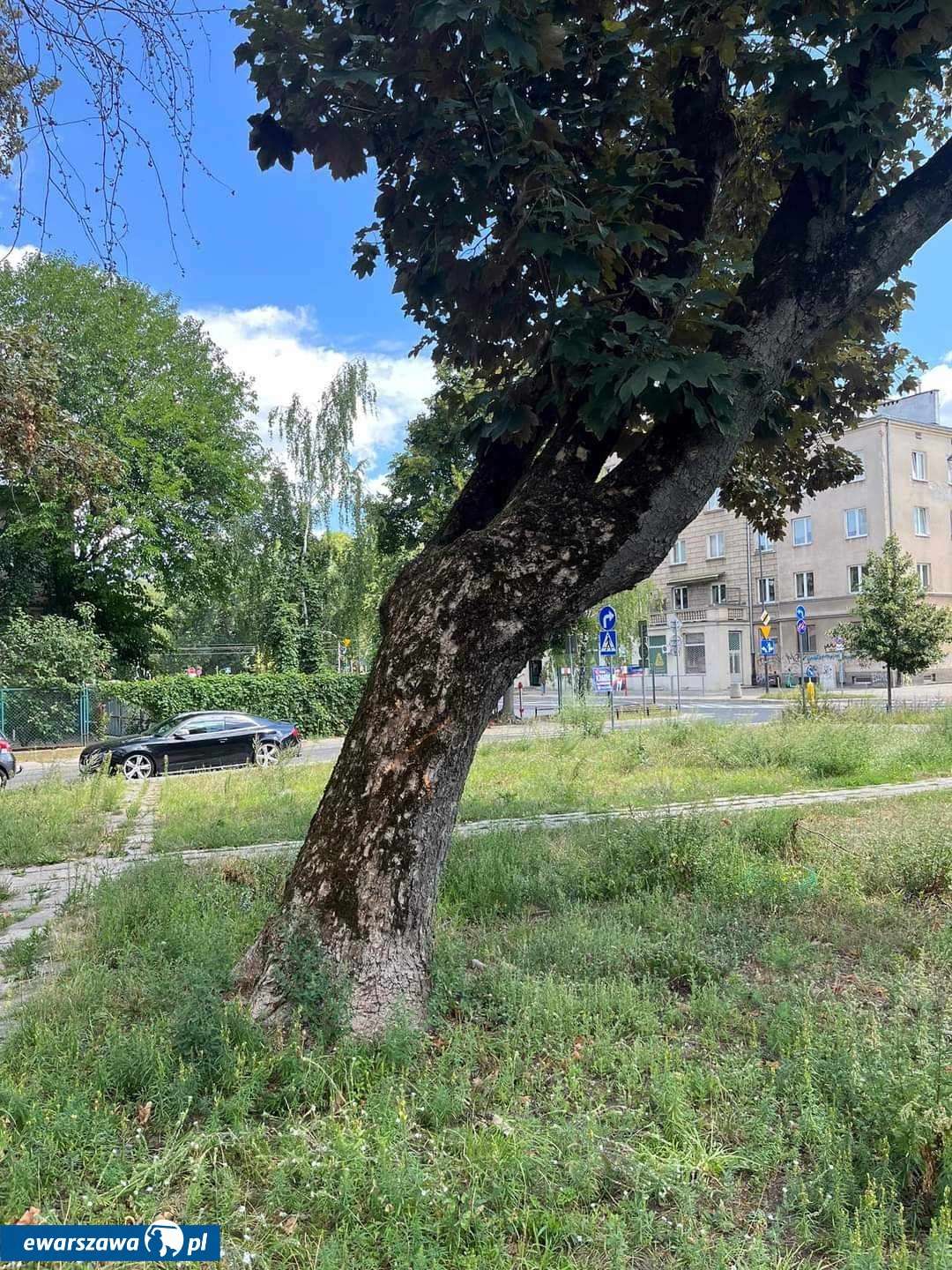 Na warszawskich Bielanach, na jednym ze skwerów, jest drzewo, które za chwilę może runąć.