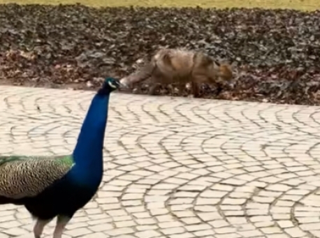 Lis szedł na spacer z pawiem. Niesamowite nagranie z Łazienek Królewskich