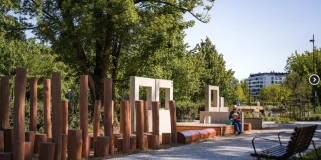 W parku na Żoliborzu stanął plac zabaw przypominający pociąg. Ale adresowany jest raczej dla dorosłych