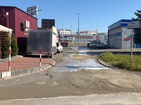 Rzeka świeżego betonu zalała Górczewską. Auta zanurzone aż po felgi