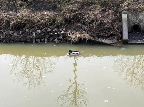 Brunatno-zielona woda w warszawskim potoku. "Czy ktoś wie, co tam pływa?"