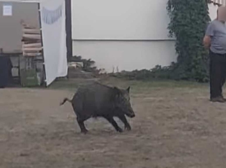 Dzik wpadł na festyn parafialny. Ludzie uciekali w popłochu