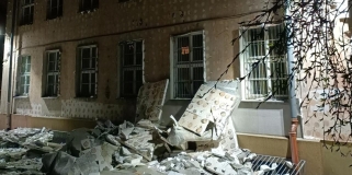 Liceum na Pradze-Północ odcięte od szkolnego boiska. Zrobiło się niebezpiecznie przez odpadającą termoizolację