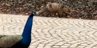 Lis szedł na spacer z pawiem. Niesamowite nagranie z Łazienek Królewskich