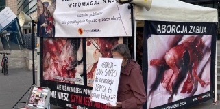 Fundacja Pro-prawo do życia z transparamentami pod Galerią Wileńską. Ludzie przechodzili obojętnie