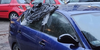 Niesamowity gest na parkingu. Kobieta zasłoniła komuś okno folią, żeby auto mu nie zmokło