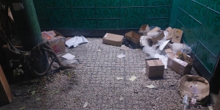 Zrobili przy paczkomacie na Powiślu śmietnik. Kartony po przesyłkach rzucają gdzie popadnie