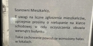 "Prosimy o nietupanie na korytarzu w celu pozbycia się śniegu z butów". Nietypowa kartka w bloku na Woli