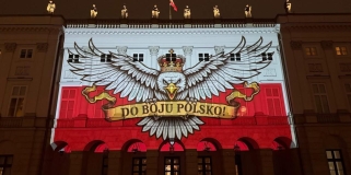 Pałac Prezydencki Prezydencki wyświetla oprawę przed meczem Polska-Malta, którą kilka dni temu zabroniono wnieść na Stadion Narodowy