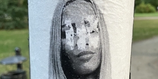 Wulgarne plakaty ze zdjęciem młodej kobiety w Ogrodzie Saskim