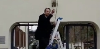 Ambasador Szwecji na drabinie przed ambasadą. To z powodu wejścia do NATO
