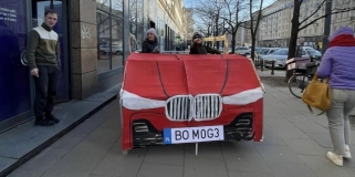 Kartonowym samochodem 'wjechali' na chodnik. To znak protestu