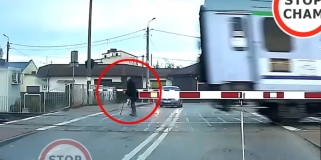 Staruszek przechodził przez tory mimo opuszczonych rogatek. Pociąg przejechał kilkadziesiąt cm od niego