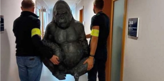 Policja chwali się sukcesem. Odzyskała skradzioną dekorację goryla z restauracji. Nie jest tania