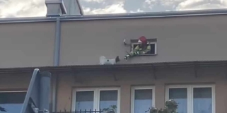 Pies chodził po zadaszeniu na ostatnim piętrze bloku. Niesamowita akcja straży pożarnej i policji!