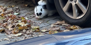 Wystraszony królik siedział pod samochodem. Mieszkańcy rzucili się mu na ratunek