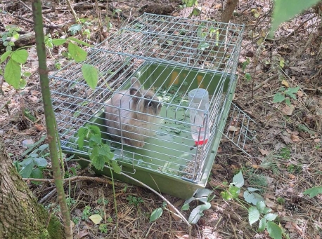 Ktoś porzucił królika razem z klatką w lesie. Zwierzę było skrajnie zaniedbane