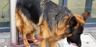 Kolejny pies porzucony pod marketem. Stoi tam od kilku godzin. Pracownicy Lidla nakarmili psa