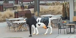 Zniszczył sztuczną krowę przed lodziarnią. Policja musiała go obezwładnić