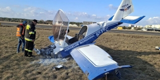 Wypadek na lotnisku Warszawa-Babice. Awionetka uderzyła w obrośniętą trawą ziemię