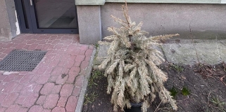 Uschnięta choinka pojawiła się przed blokiem na Powiślu. "Chętnie się spotkam i pomogę z transportem jak masz jakąś kontuzję"