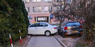 "Niech ktoś wtoczy ten samochód". Auto tarasowało przejazd na jednej z warszawskich ulic